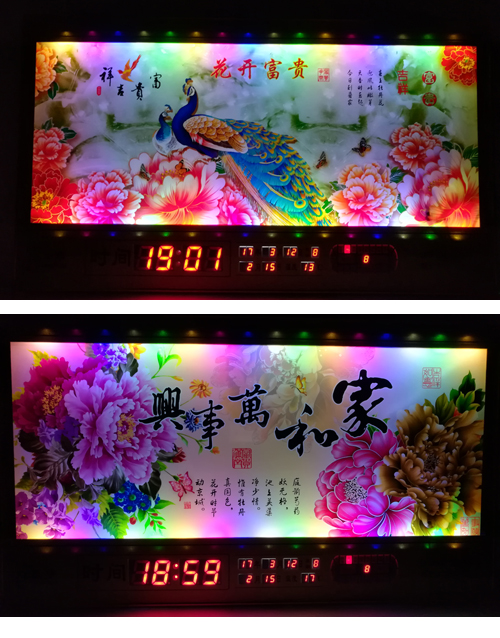 新房客廳裝飾日歷掛鐘,家和風(fēng)景萬(wàn)年歷,超薄七彩燈光更漂亮