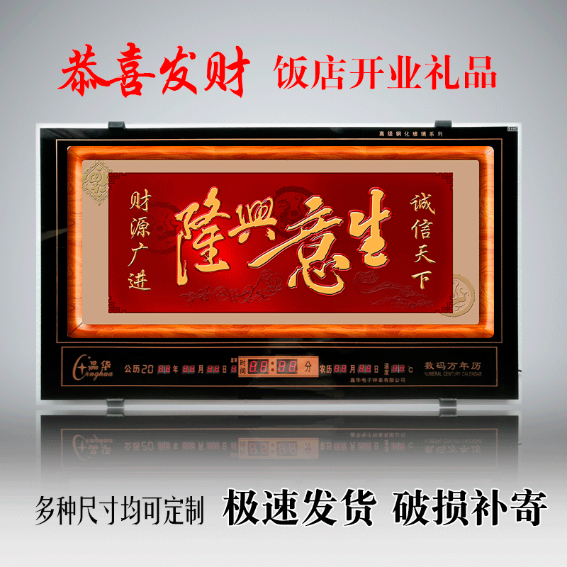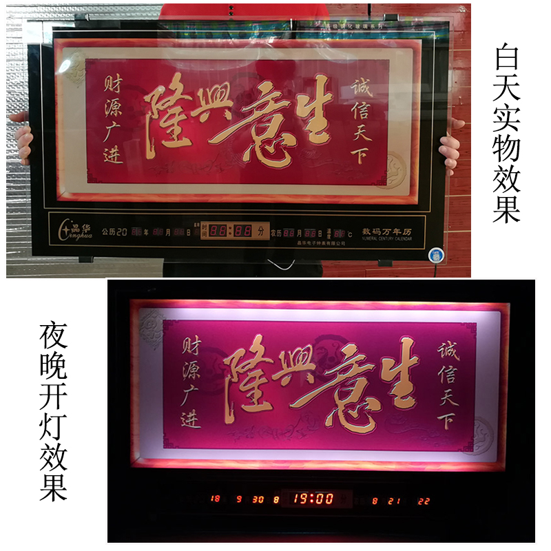 新房客廳裝飾日歷掛鐘,家和風(fēng)景萬年歷,超薄七彩燈光更漂亮